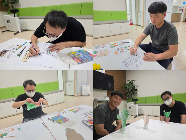 2026년 2월 미술활동(손바닥으로 선인장 만들기) 첨부파일 20260219-tile.jpg (501.0K) 관련링크 본문 선인장 형태를 구성하고 색채를 선택하여 꾸미는 과정을 통해 공간 인식력과 미술 구성 능력을 증진하고, 자기 표현력 및 정서적 안정감을 도모합니다. 댓글목록 등록된 댓글이 없습니다. 이전글 다음글 목록