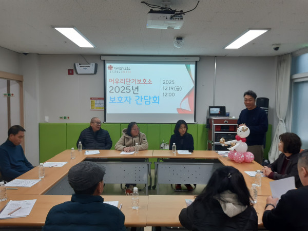 2025년 12월 보호자 간담회 첨부파일 20251219_121246.jpg (3.1M) 관련링크 본문 이용인의 생활 전반과 지원 현황을 공유하고, 보호자 의견을 반영하여 개별화된 서비스 제공과 협력적 관계를 강화하고자 합니다. 댓글목록 등록된 댓글이 없습니다. 다음글 목록