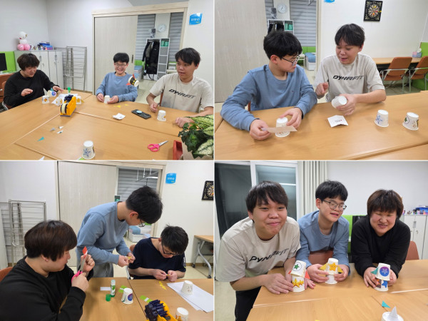 2026년 2월 미술활동(종이컵 로켓 만들기) 첨부파일 20260211-tile.jpg (602.7K) 관련링크 본문 종이컵 로켓 제작에 단계적으로 참여하며 창의적 표현력과 상상력을 증진하고 과제 지속력과 집중력 향상을 지원합니다. 댓글목록 등록된 댓글이 없습니다. 이전글 다음글 목록
