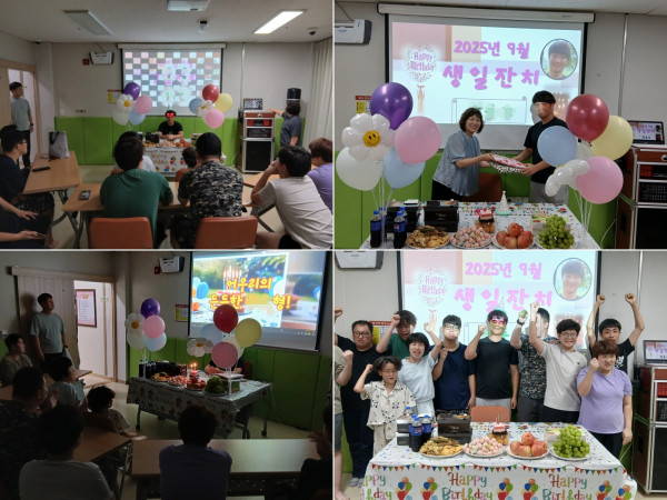 2025년 9월 생일잔치 첨부파일 KakaoTalk_20250929_211119503-tile.jpg (633.2K) 관련링크 본문 이용인의 생일을 함께 축하하며 소속감을 느끼고 긍정적인 정서를 경험하도록 지원합니다. 댓글목록 등록된 댓글이 없습니다. 이전글 다음글 목록